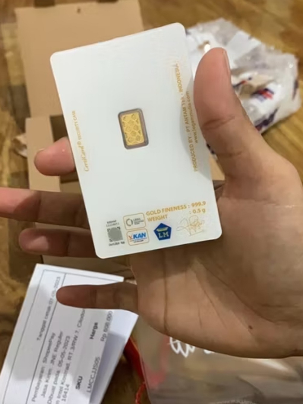 Emas ANTAM Logam Mulia (LM) hadir dengan desain dan kemasan dalam bentuk kartu yang disertai security mark untuk meningkatkan perlindungan dan keamanan bagi investasi anda.