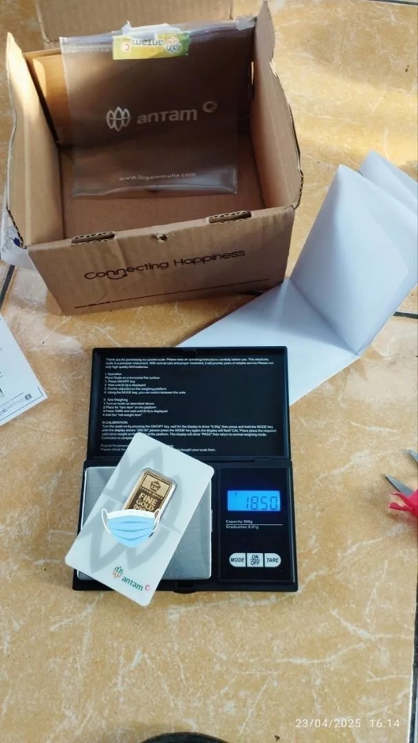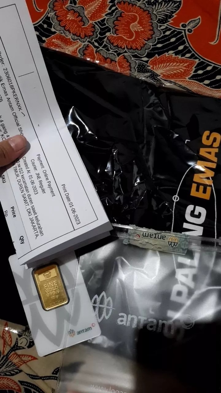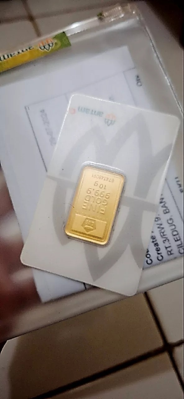 Keaslian: asli original antam Desain: antam 10g Warna: gold Trimaksih ,barang sudah sampai dengan selamat meskipun sedikit deg2 an dari awal order dg jumlah nominal yg gk sedikit, sedikit lama krn terkena hari libur akirnya sampai jug dan sudah discan original antam,tpi sedikit kesel sma kurir nya yg agak ngawur karna tidak ada konfirmasi sebelumnya ,paket ditaruh digarasi samping rumah begitu saja pas gak ada orang dirumah,tp Alhamdulillah cepat2 saya pulang dan peket masih aman,lain kali mungkin bisa ditingkatkan lagi dari segi jasa pengirimannya,biar konsumen tenang sampai paketnya ditangan sipenerima aslinya