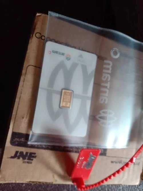 Tampilan: asli antam Warna: emas donnnk alhamdulillah kesampaian juga beli emas antam, dan sudah tersertifikasi asli ya dari certieye..moga Allah kasih rejeki lagi buat beli lagi disini☺aamiin